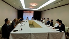 全体会議に先立ち、5階「松の間」にて令和7年度第3回理事会を開催。本日の全体会議における段取りや役割分担の確認、9月の活動報告、10月以降の事業予定について話し合いました。 | ![]() |