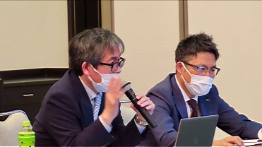 | ブロックメーカー各社からは、大臣認定擁壁に関する問い合わせが増加していることや、今後予定されているブロックセミナーなどで情報提供を強化していく方針が示されました。太陽エコブロックス・木村氏、ユニソン・石垣氏からは、盛土規制法に関する自社の取り組みも紹介され、来年4月の総会での詳細解説に向けた予告もありました。 | ![]() |